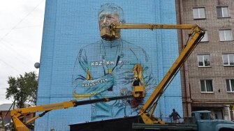 Портрет известного казахстанского спортсмена, олимпийского чемпиона Александра Винокурова нарисовали художники из Санкт-Петербурга...